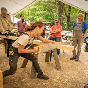 MHTF has also brought an interactive component to the Litchfield Fair, where anyone is welcome to try some of our hand tools on real timbers.