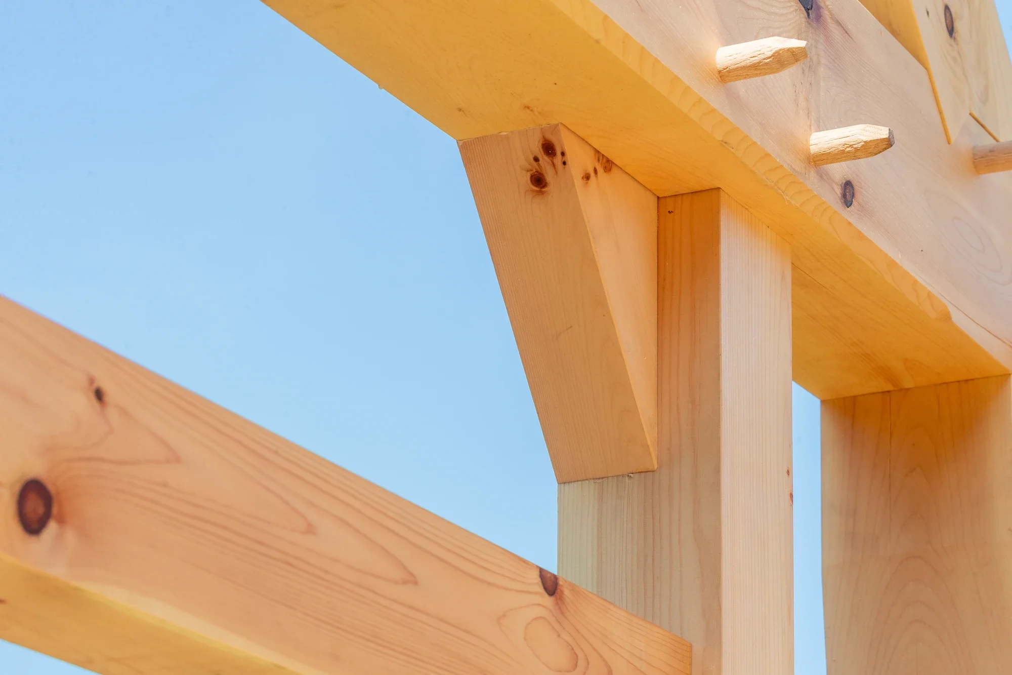 A small but mighty cottage, it is named from a prominent joint within its design: the English tying joint. This quintessential joint at the intersection of roof and wall is fortified by an interlocking system that is terrifically strong in tension. The main “Gunstock” posts are full dimension above, allowing for lots of joinery, then tapered below for a classic and elegant feel. The Cottage has a 12/12 roof pitch with purlins to catch vertical roof boards. The custom window & door framing creates an extra special touch for a one-of-a-kind experience within this luxurious outbuilding.